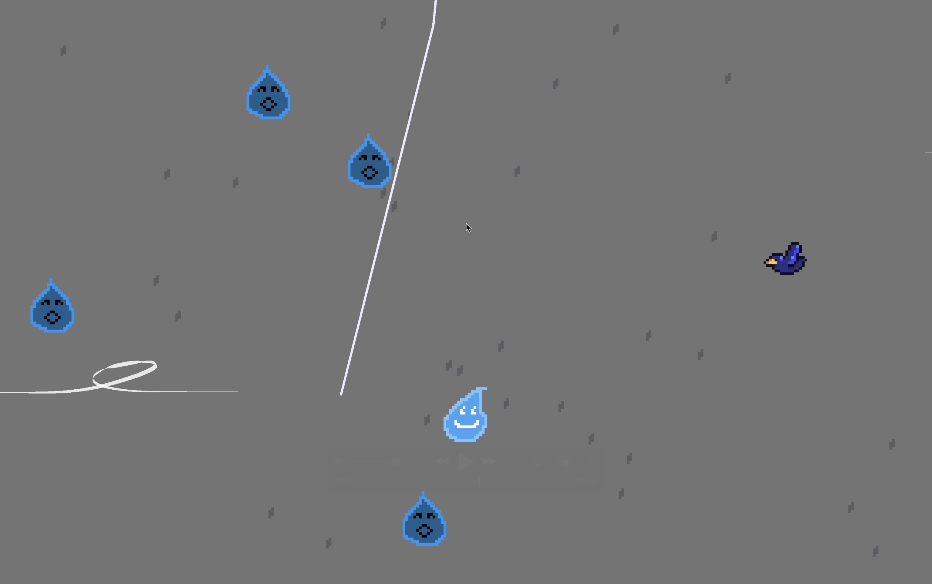 Play as a raindrop who has fallen into a puddle from the clouds and must make it back up in this Getting Over It-inspired game. Dash between falling raindrops to ascend your way to the heavens, but beware of birds and lightning strikes along your way!